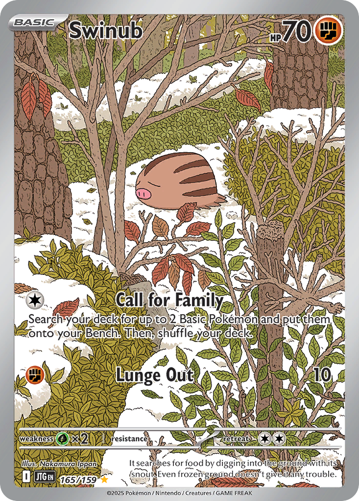 Pokémon kaart 165/159 - Swinub - [Illustration Rare]. Een 'Illustration Rare'-kaart uit de serie Journey Together in Near Mint/Mint conditie. Op voorraad bij Pokemeister.nl
